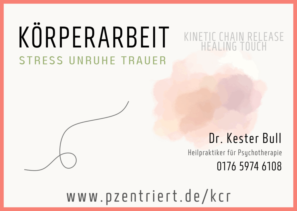 Ich biete zwei wissenschaftlich erprobte körperliche Verfahren in Berlin an. Sie fördern eine tiefe Entspannung zugunsten des psychischen Gleichgewichtes: Kinetic Chain Release (KCR) und Healing-Touch.